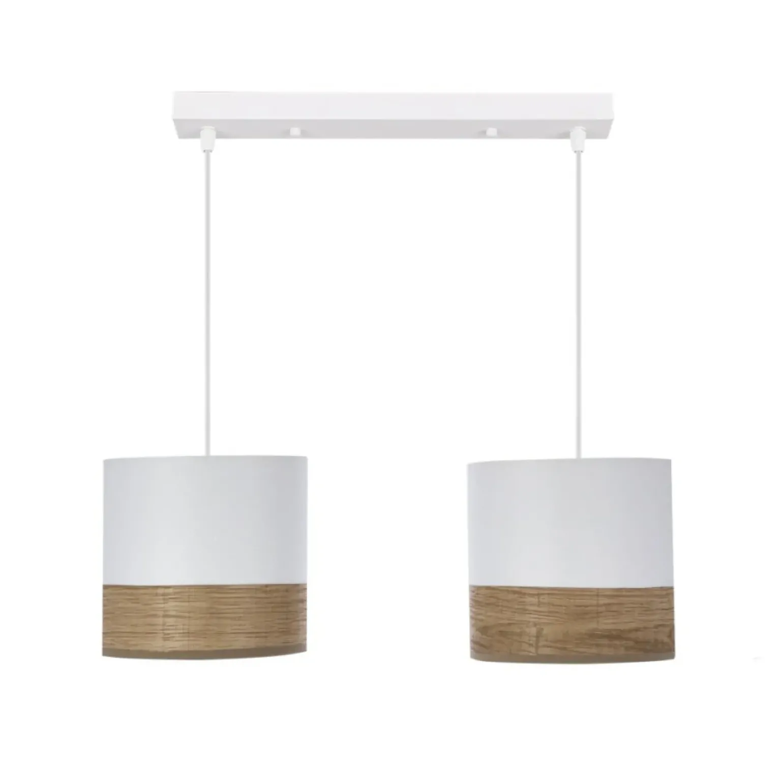 Materiał: zawiesie stalowe, abażur tkanina+fornir