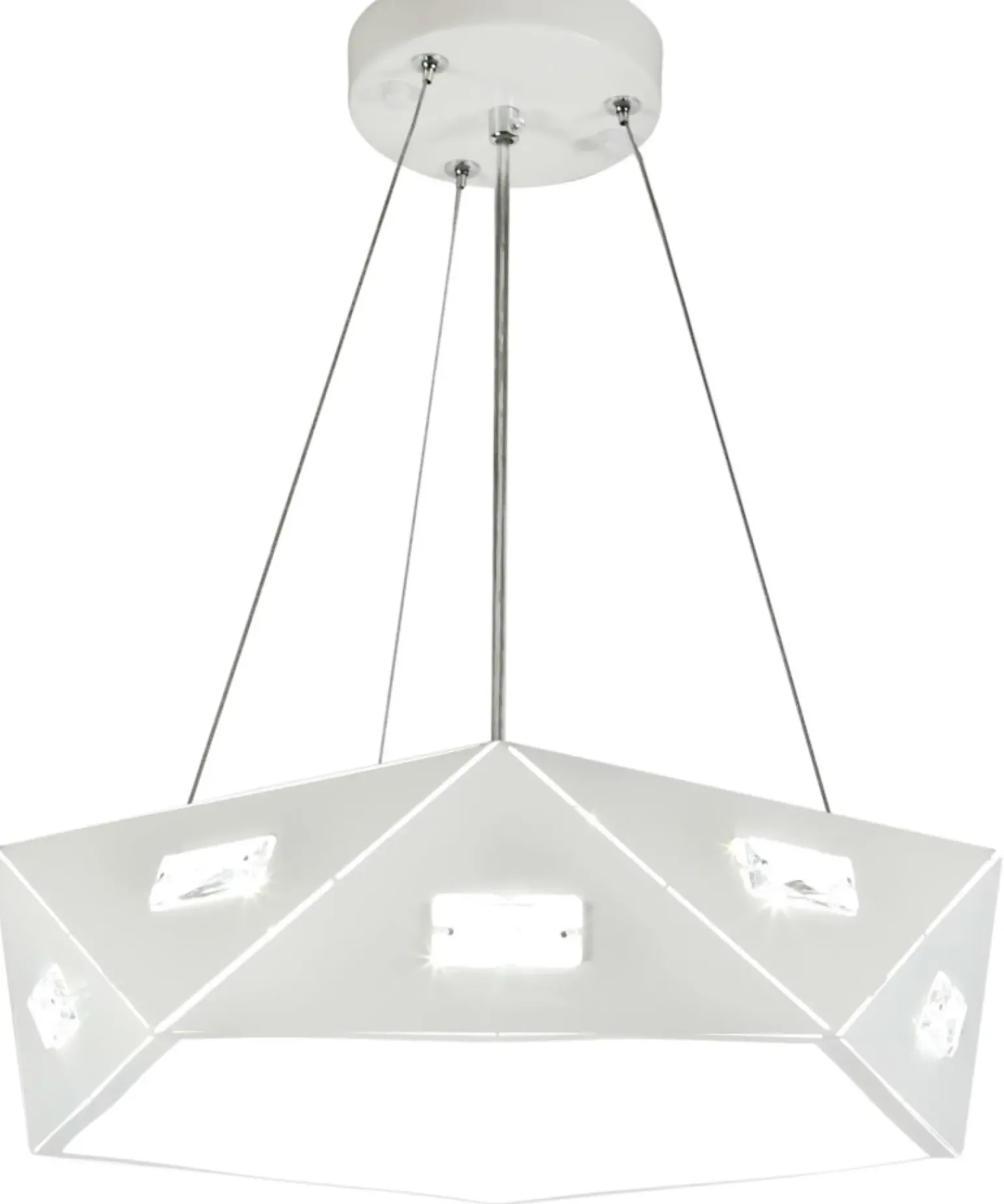 Materiał: abażur metalowy z kryształkami, zawiesie metalowe na linkach sta