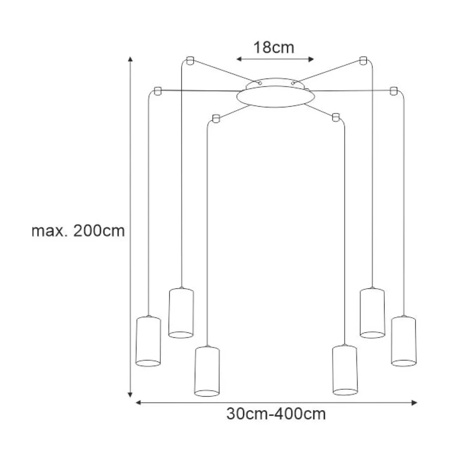 Wysokość / długość (cm): max. 200