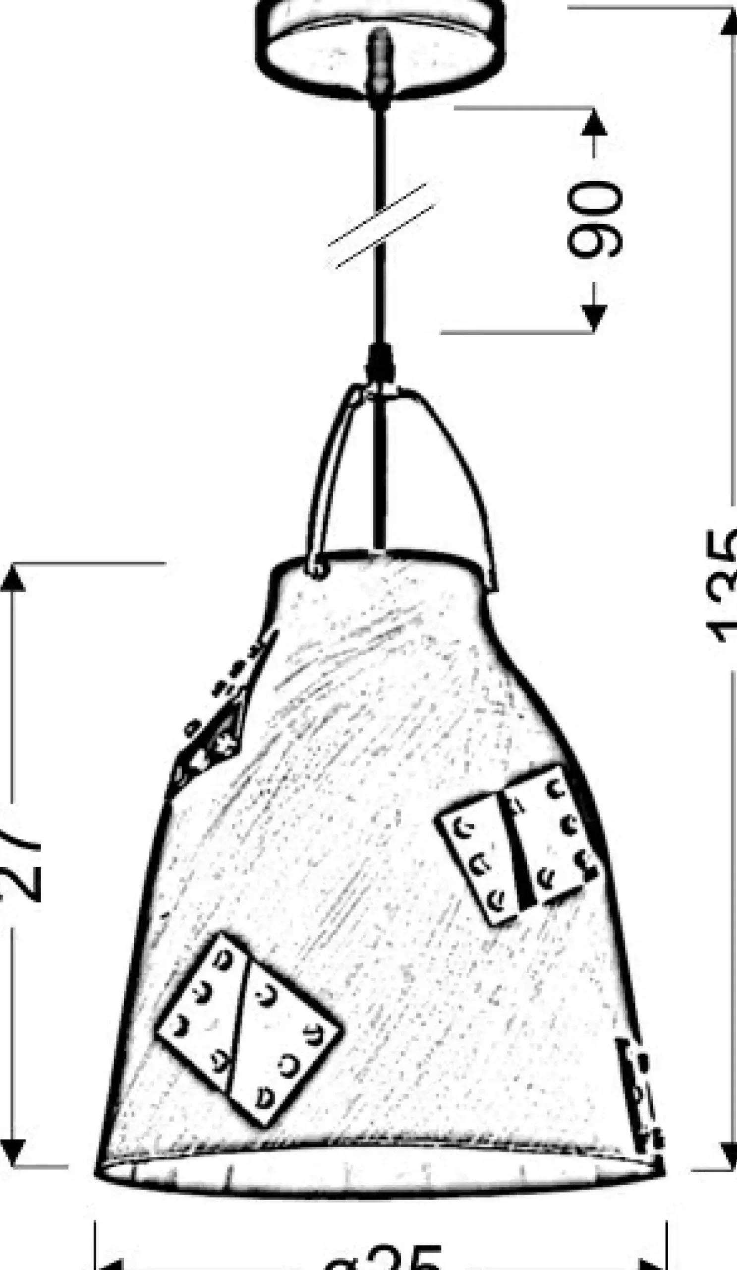 Materiał: klosz metalowy, zawiesie metal