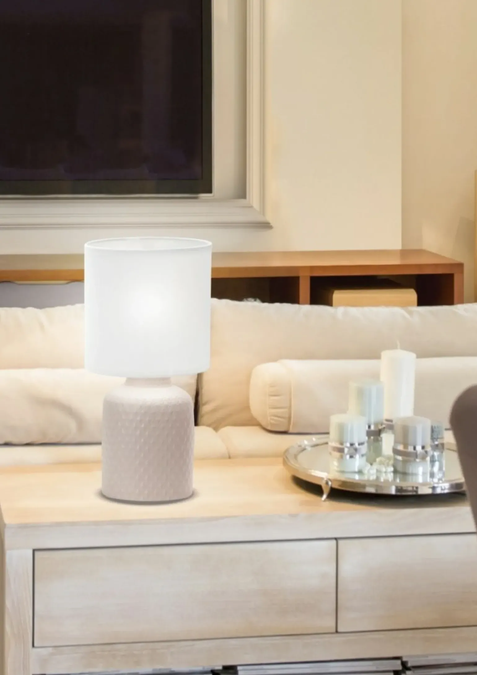 Materiał: podstawa ceramiczna, abażur tkanina, PCV
