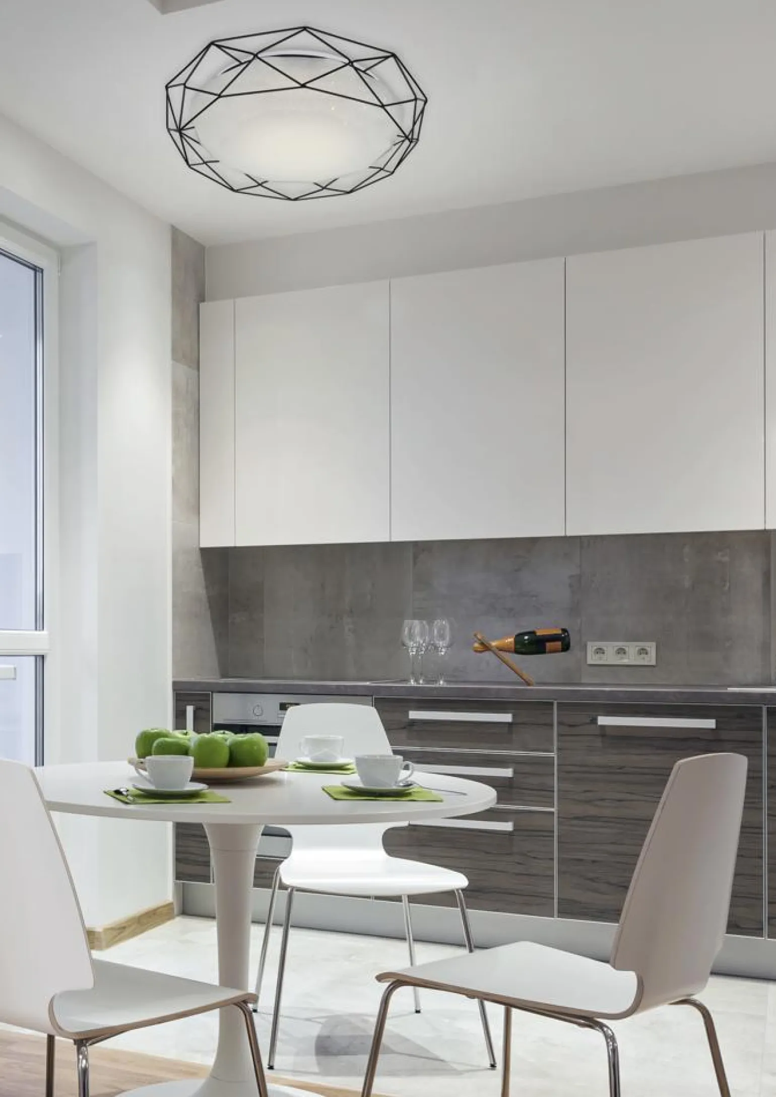 Materiał: podstawa stalowa, ozdobny koszyczek stalowy, klosz akrylowy