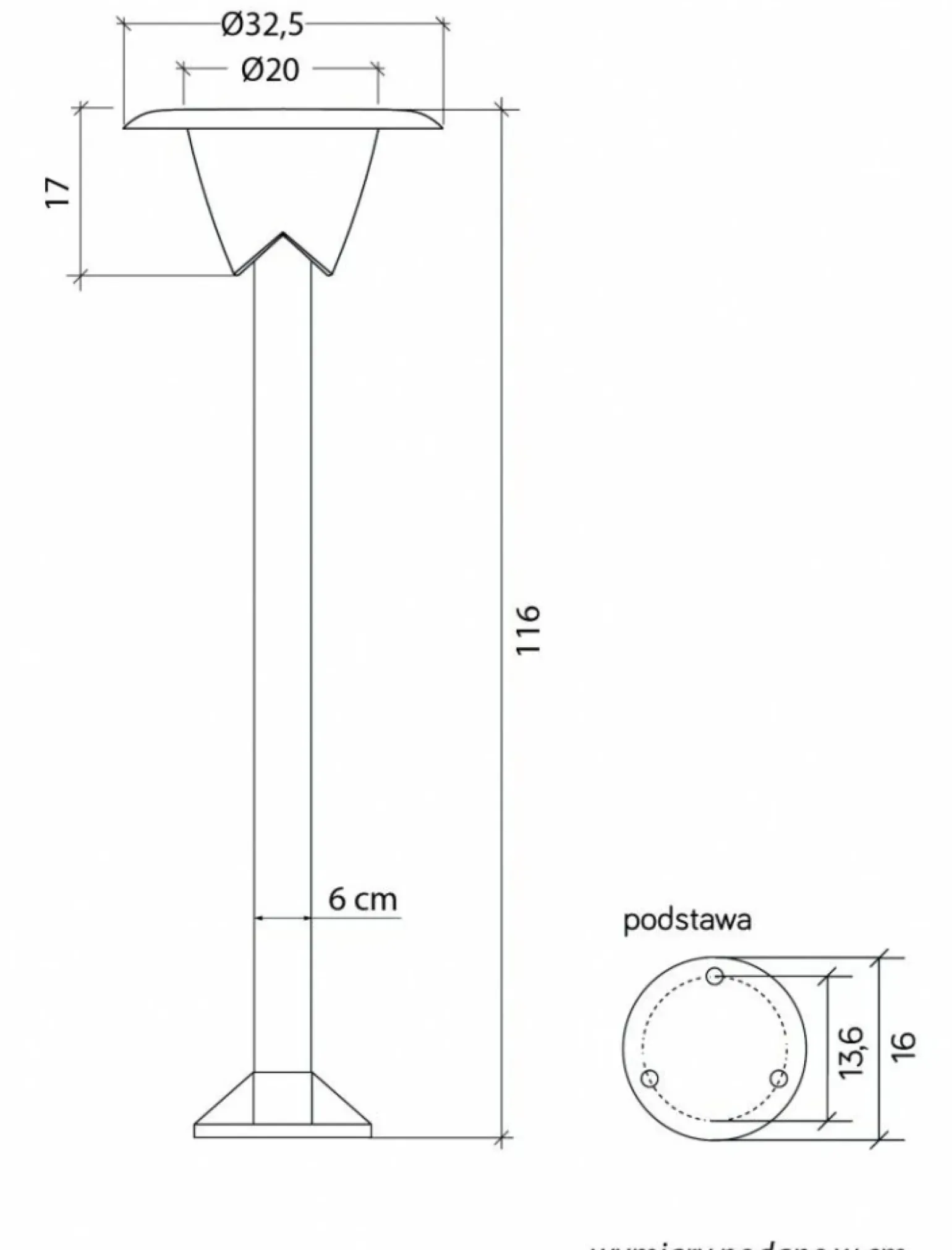 Materiał: podstawa – wzmocniony termoplastik rura – stal galwanizowana, pokryta termoplastikiem klosz – szkło akrylowe (PMMA)