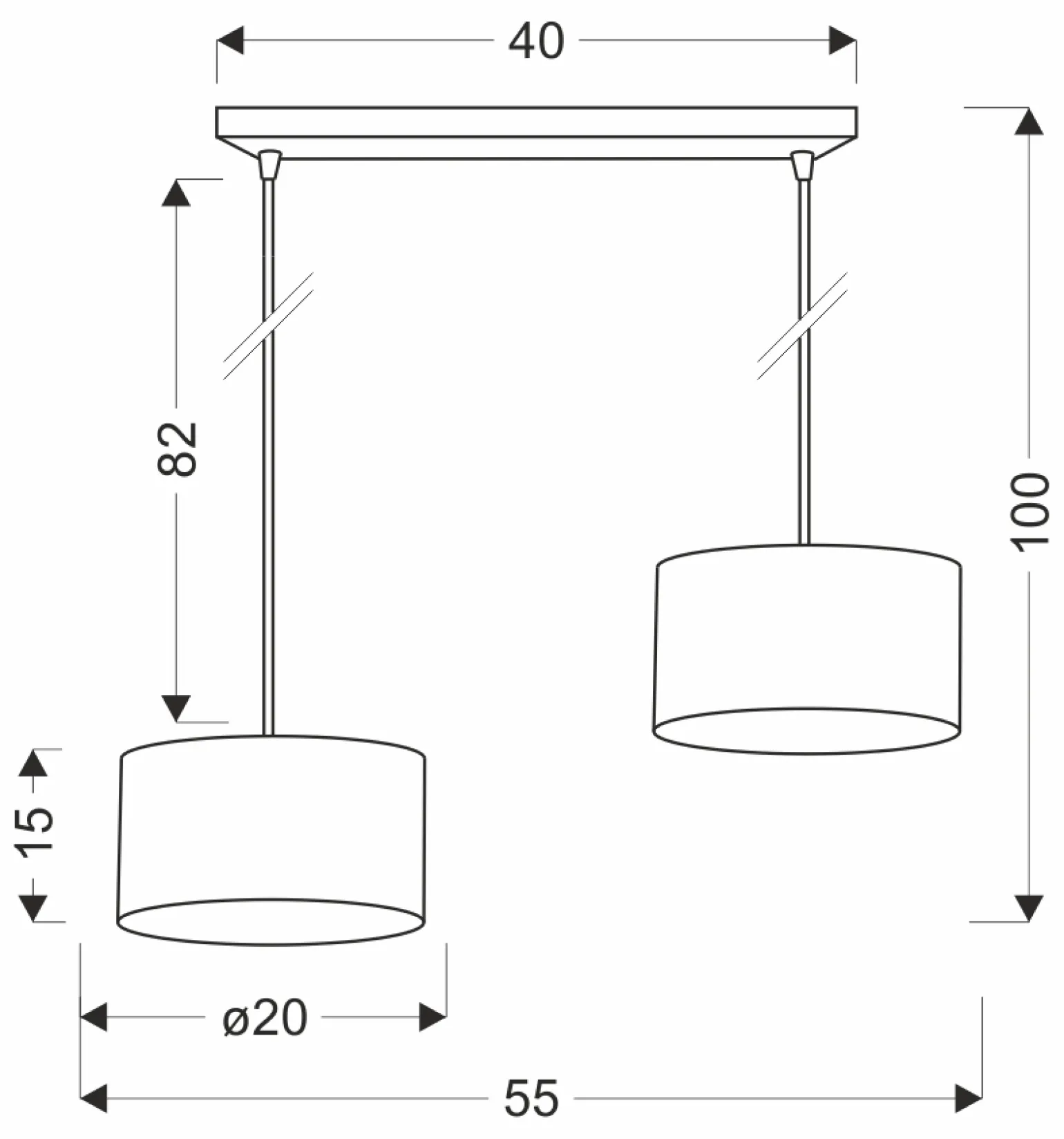 Materiał: zawiesie stalowe, abażur tkanina PCV