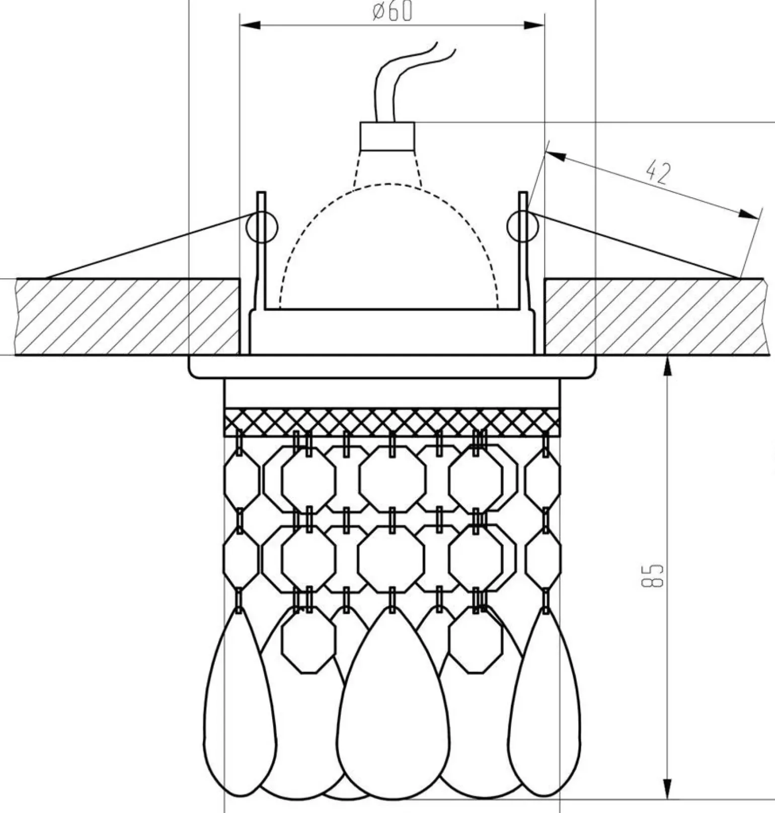 Materiał: klosz kryształki, podstawa metalowa