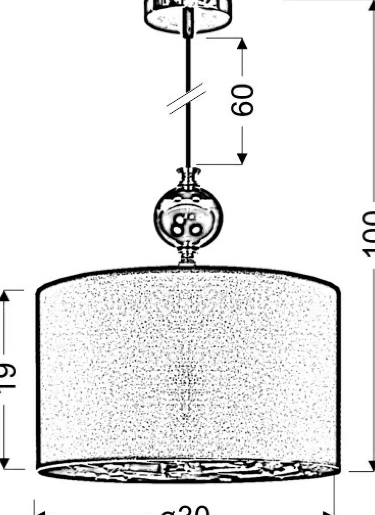 Materiał: abażur płótno/PCV, zawiesie metalowe