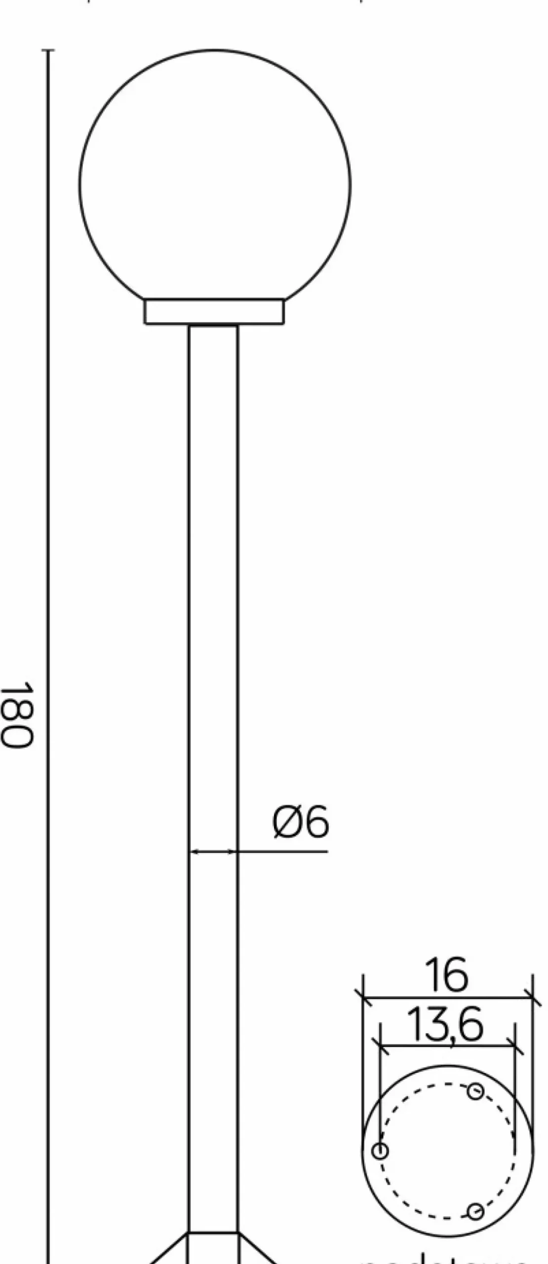 Materiał: podstawa – wzmocniony termoplastik rura – stal galwanizowana, pokryta termoplastikiem klosz – szkło akrylowe (PMMA)