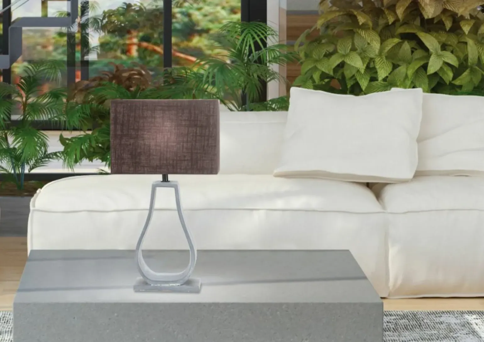 Materiał: podstawa beton architektoniczny, abażur tkanina, PCV