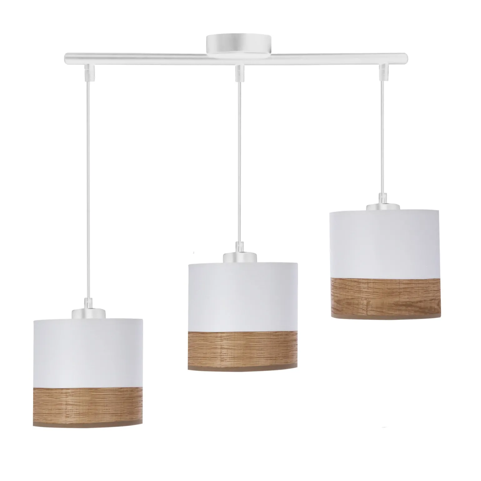 Materiał: zawiesie stalowe, abażur tkanina, fornir