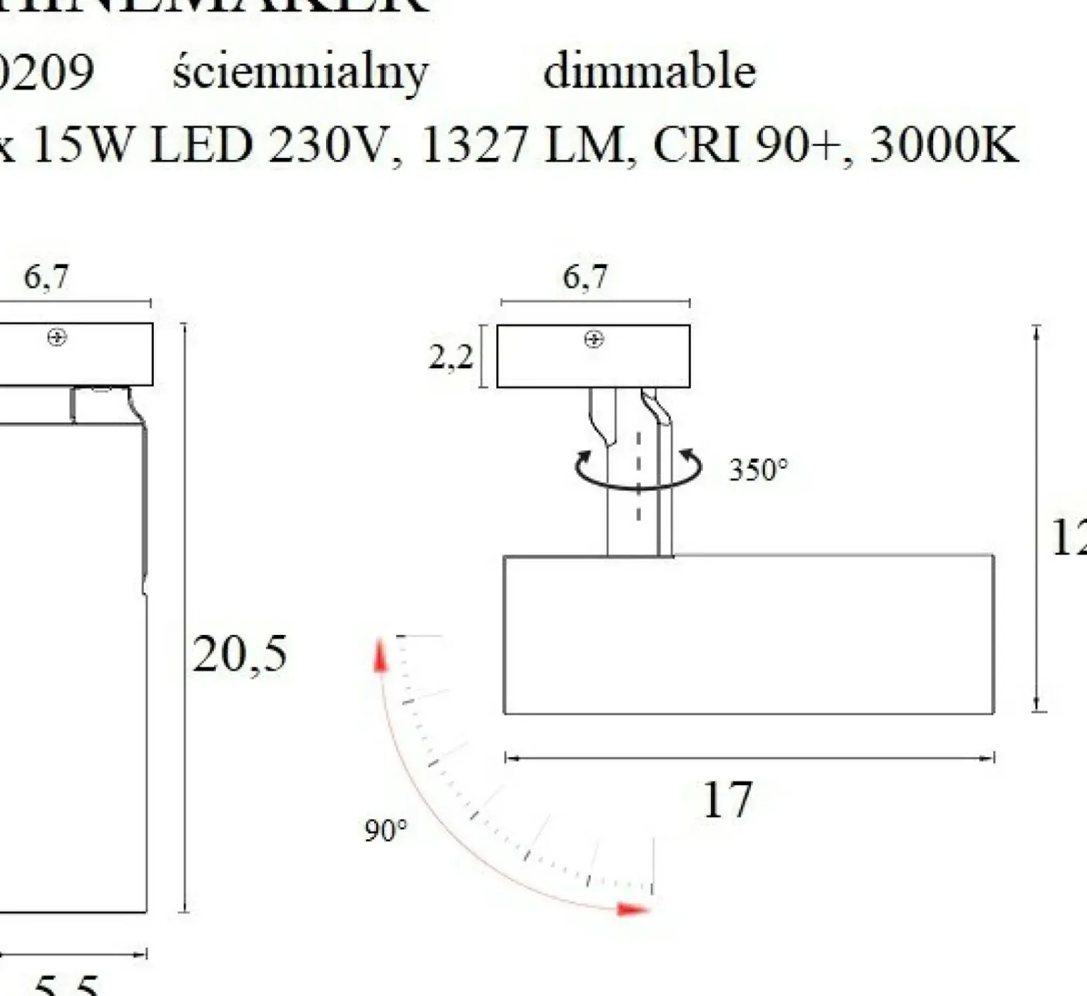Możliwość wymiany źródła światła: nie