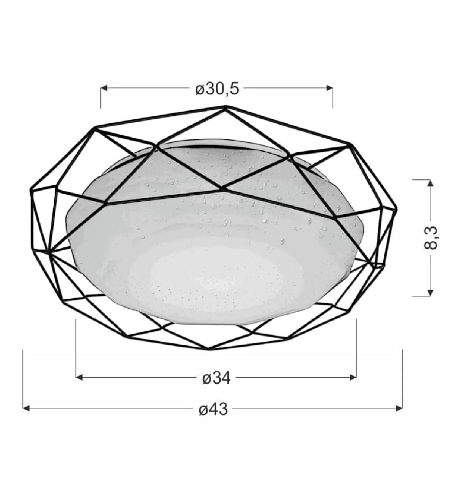 Materiał: podstawa stalowa, ozdobny koszyczek stalowy, klosz akrylowy