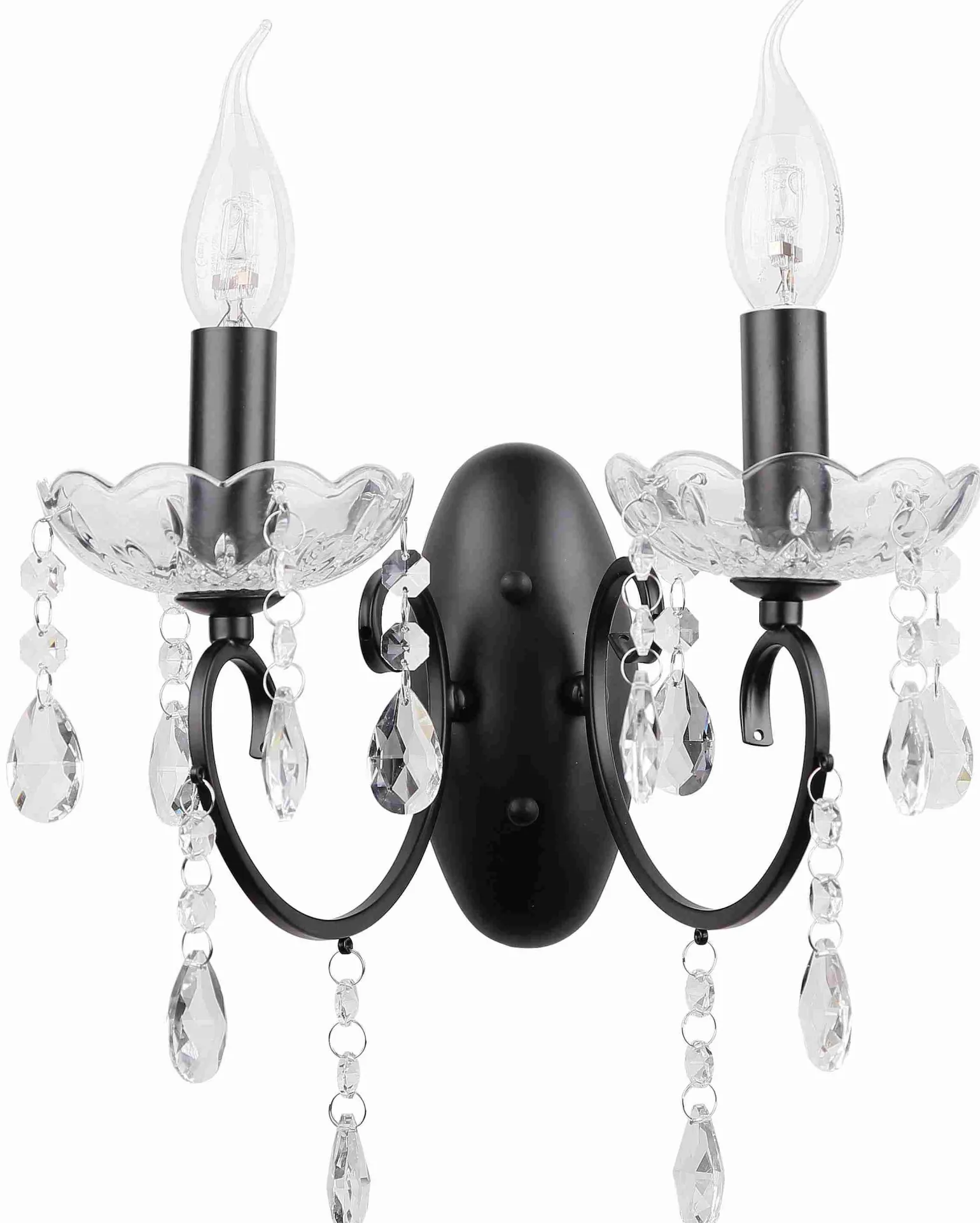 Materiał: podstawa stalowa, elementy ozdobne szklane, bez kloszy
