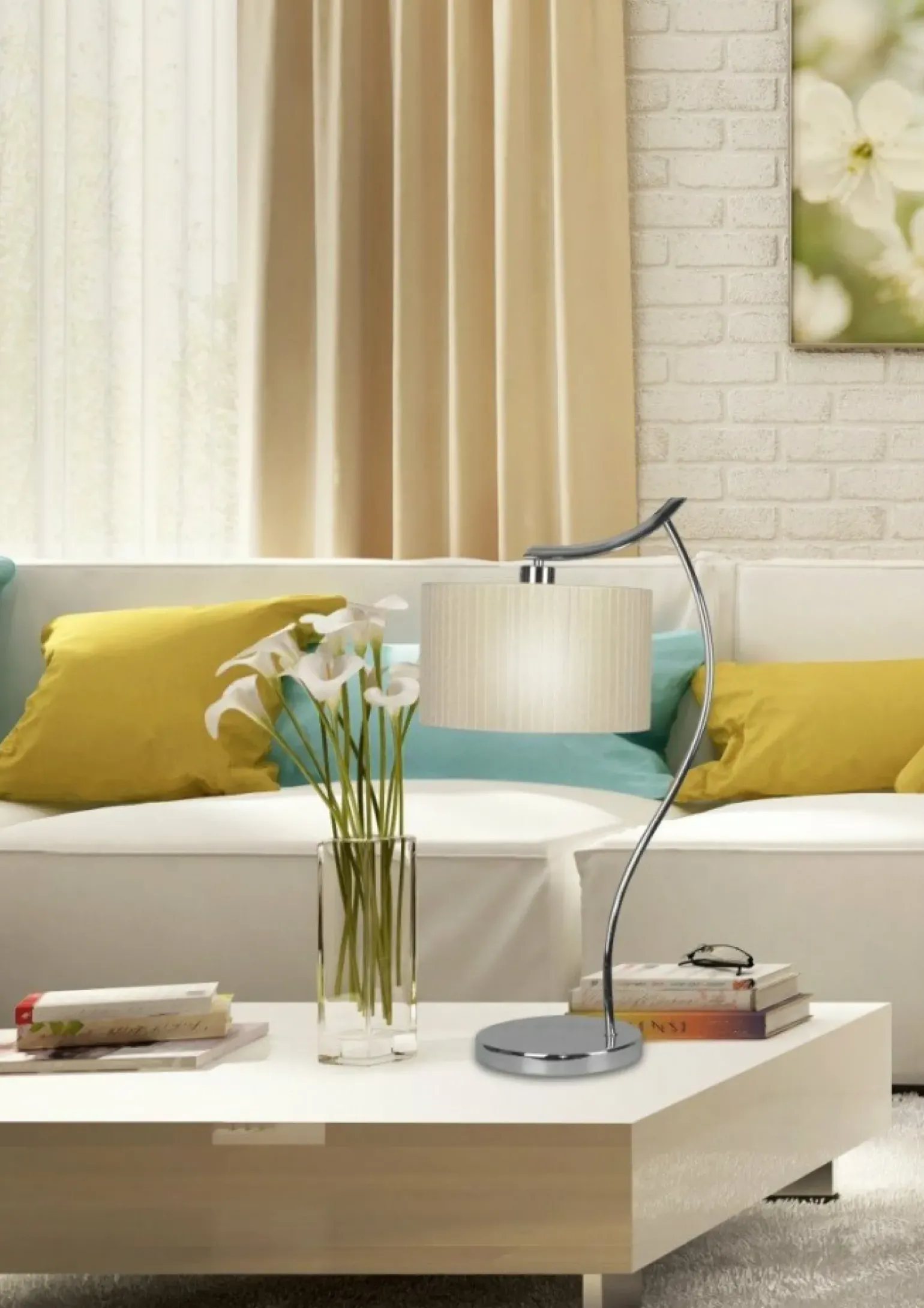 Materiał: abażur z tasiemki z organzy, podstawa metalowa