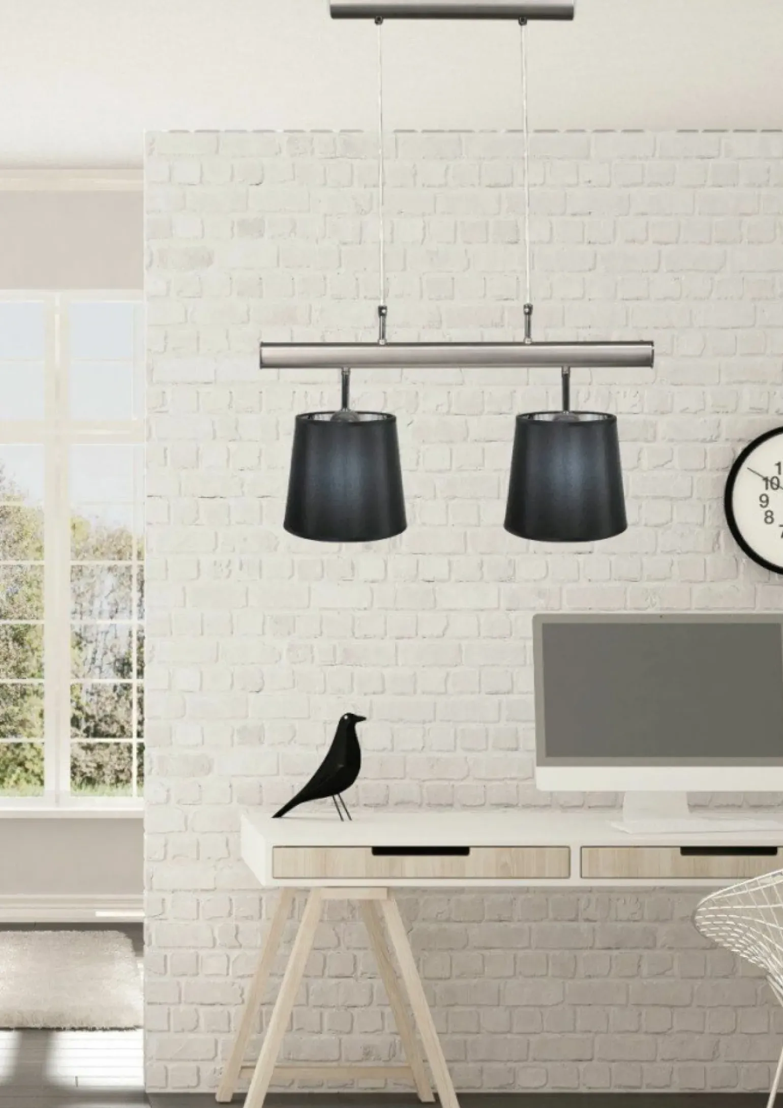 Materiał: abażur płótno/PCV, zawiesie metalowe