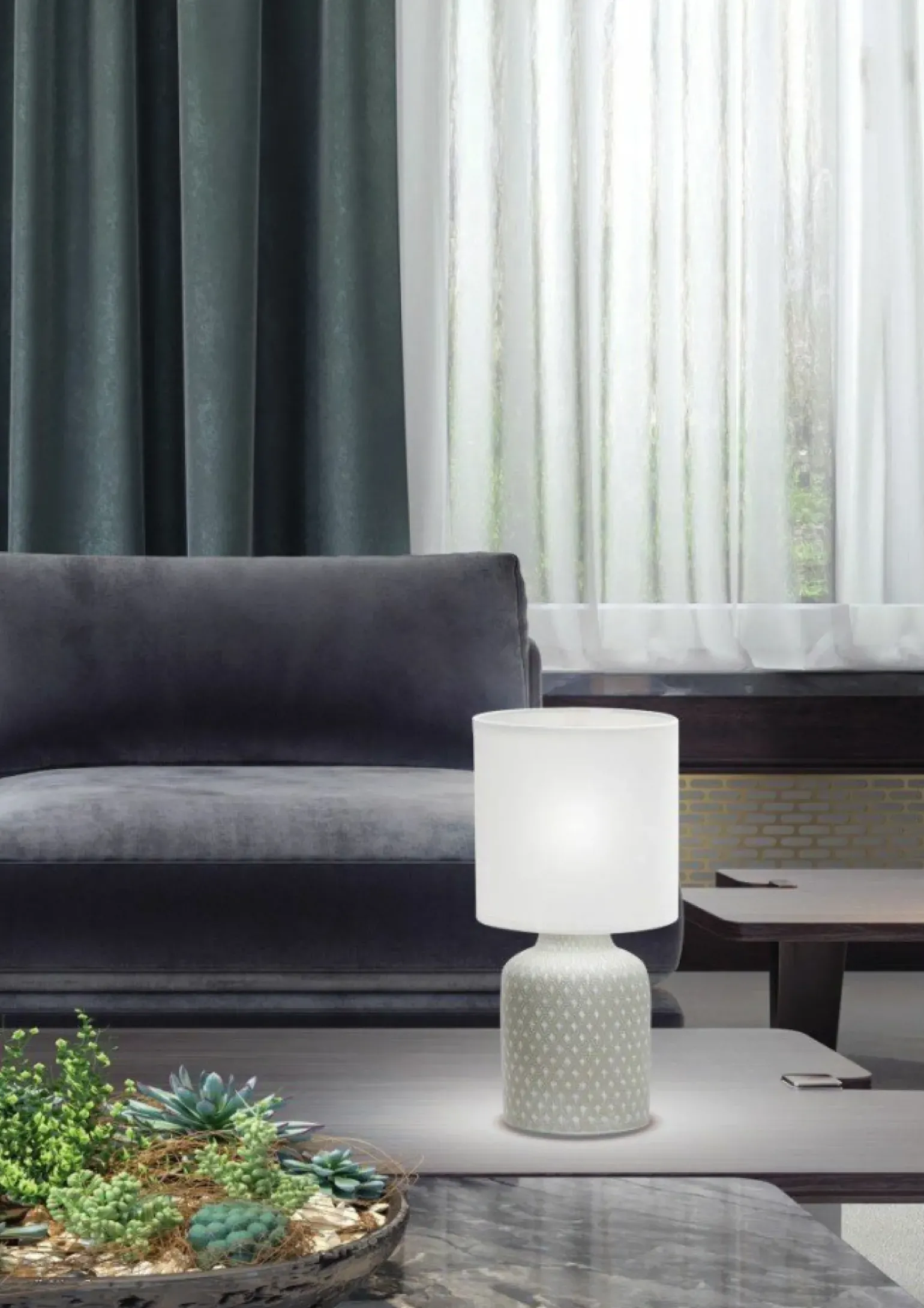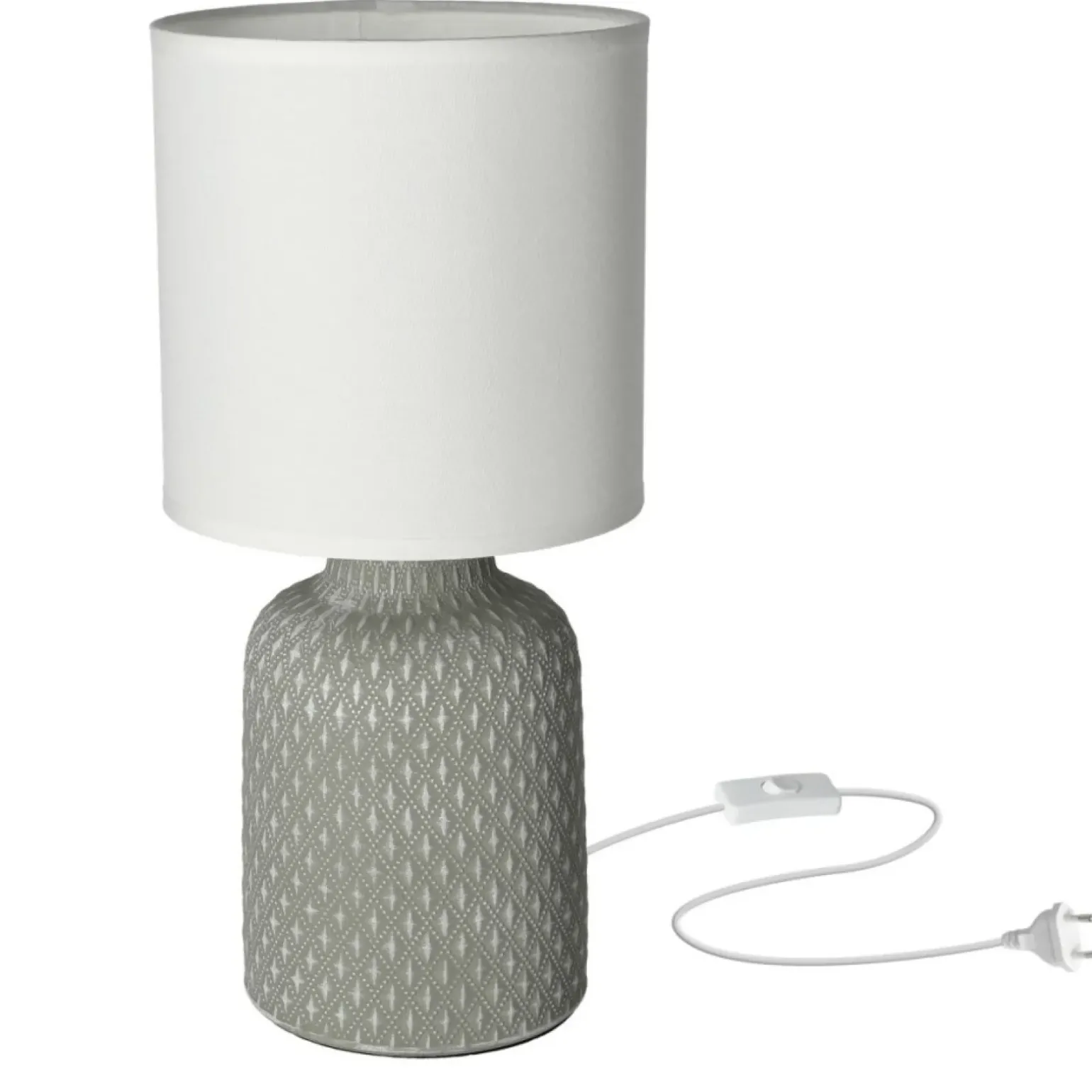 Materiał: podstawa ceramiczna, abażur tkanina, PCV