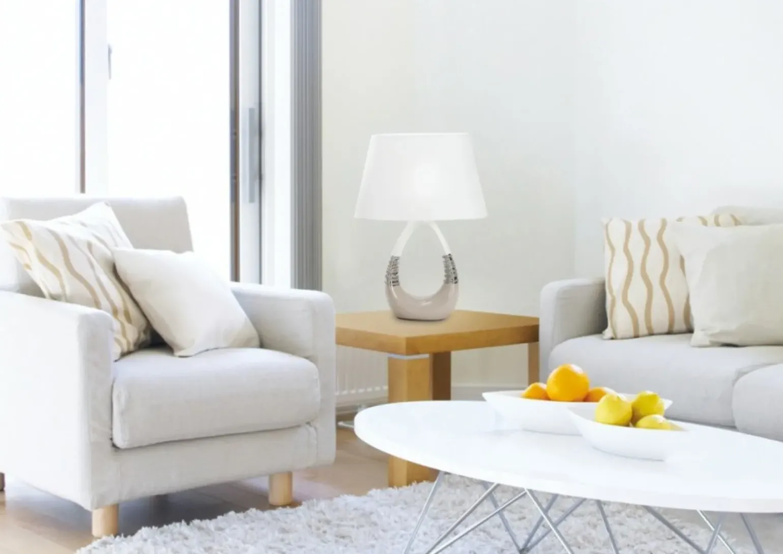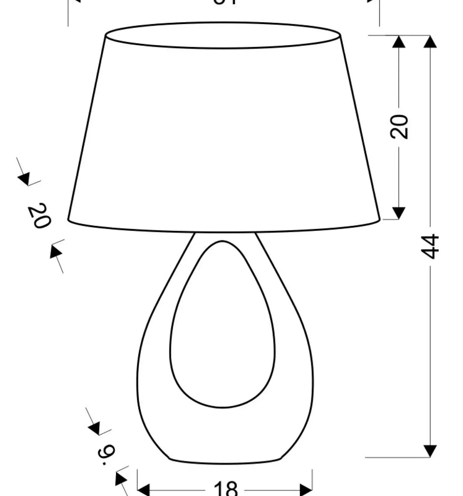 Materiał: podstawa ceramiczna, abażur tkanina, PCV