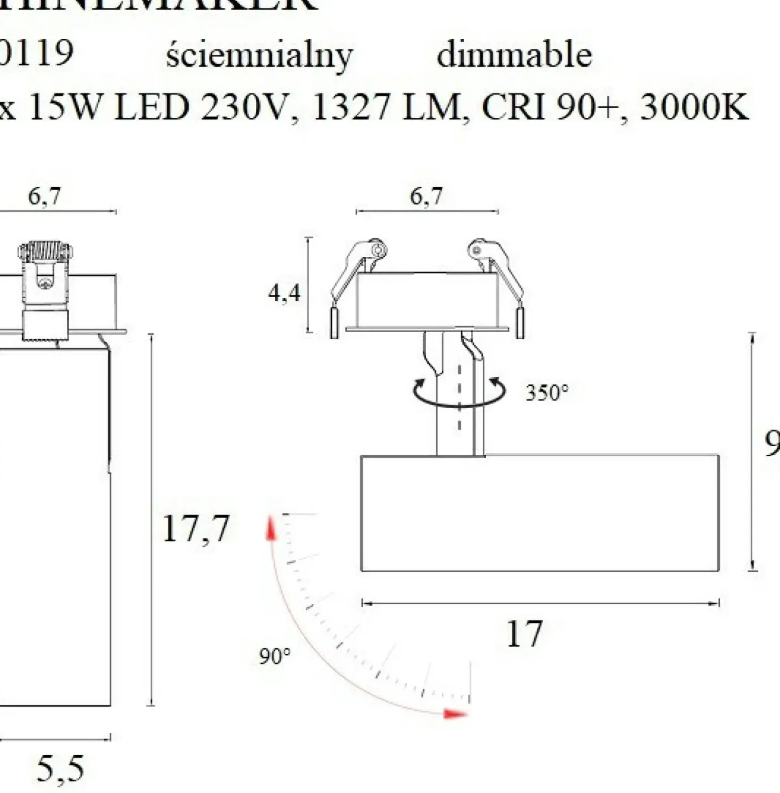 Możliwość wymiany źródła światła: nie