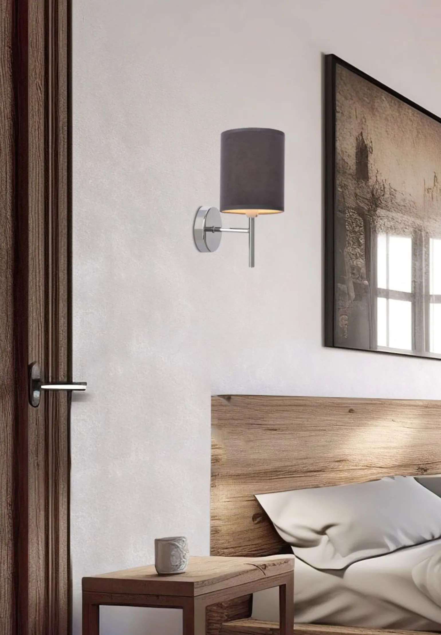 Materiał: podstawa stalowa, abażur tkanina/PCV