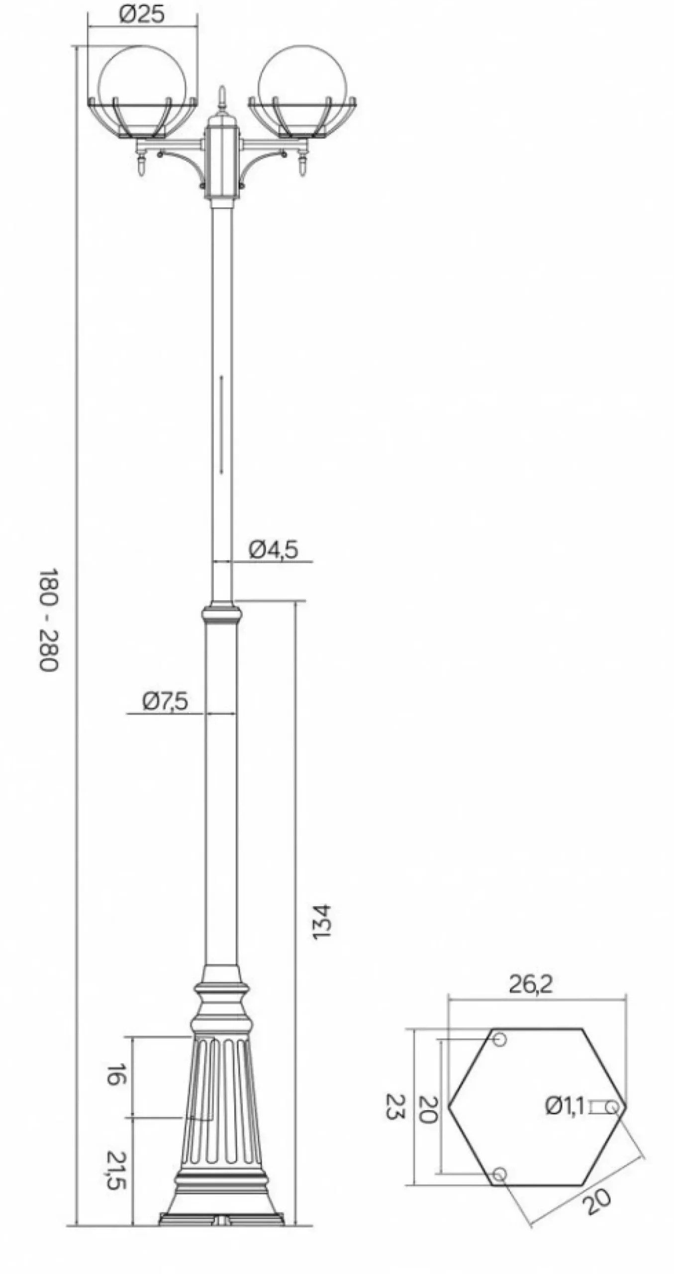 Materiał: korpus – odlew aluminiowy klosz – szkło akrylowe (PMMA)